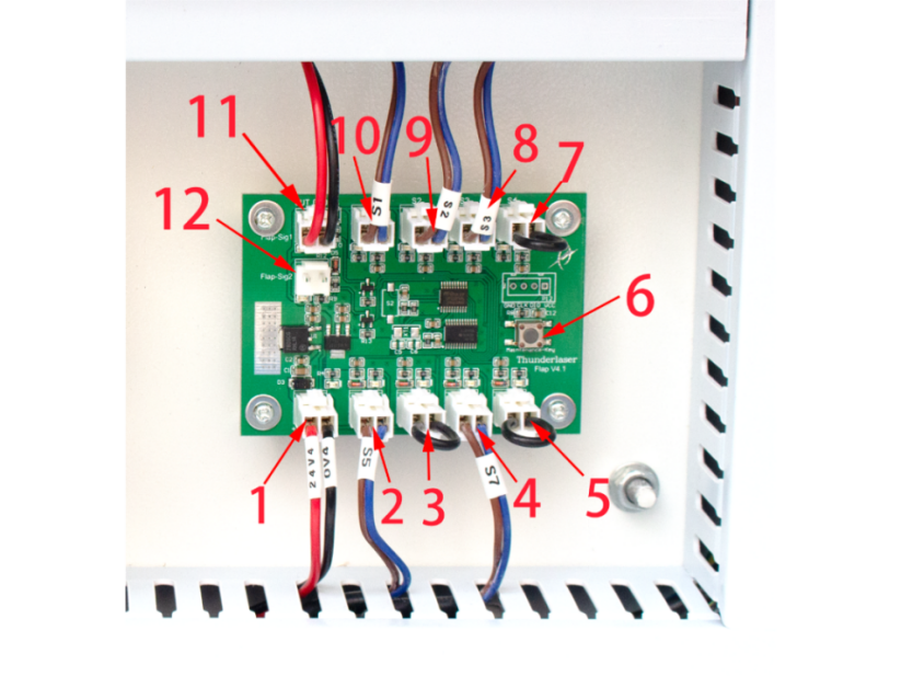 Order: S1= left side of top flap, S2 = right side of the top flap , S3= the front door, S5 = laser tube cover, S7 = left-up side door.