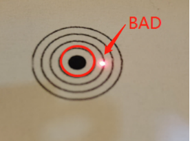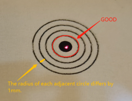 Make sure the center and 4 corners of the pulse results are all within the first circle.