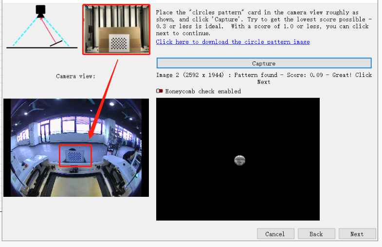 At the same time ,make sure the circle pattern image in the capture picture is clear.If not,please re-capture.