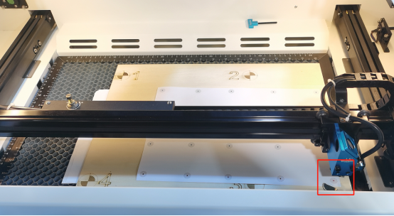 3.After moving the laser head to the position of the picture above, please click the Origin button on the touch panel.