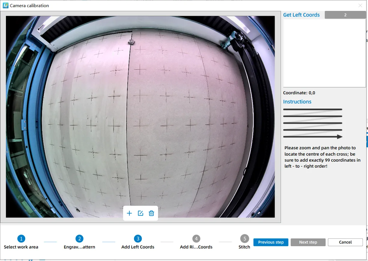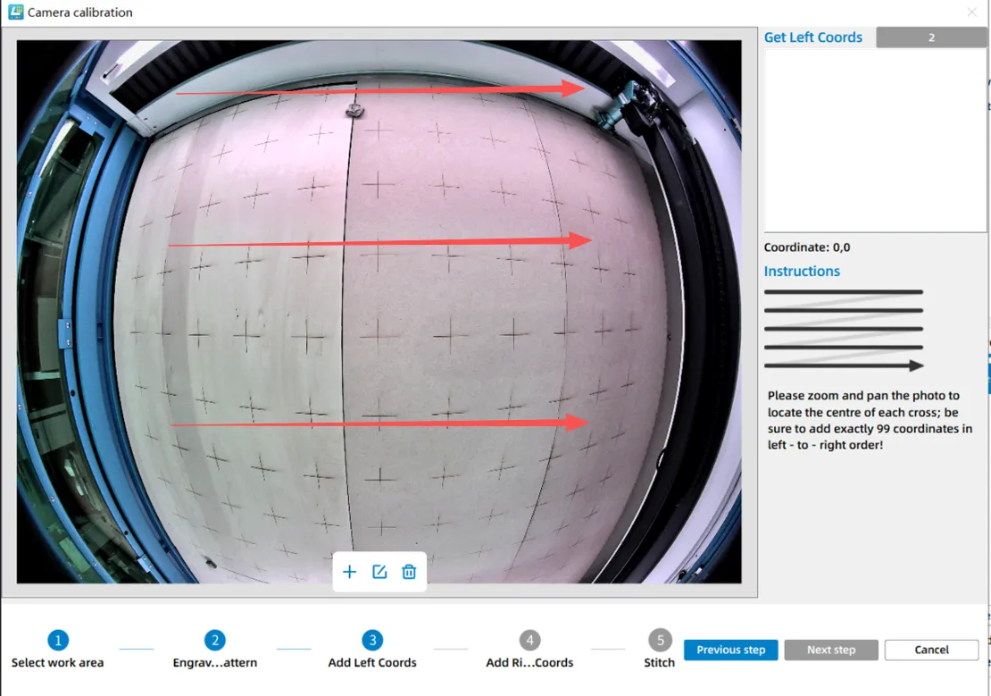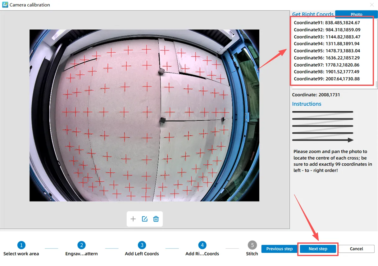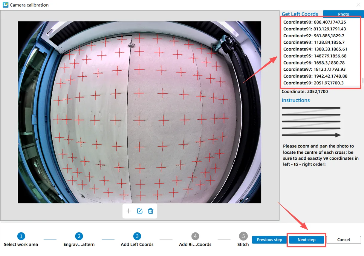 After adding all left cross coordinates, click "Next step" to proceed to add right cross coordinates.