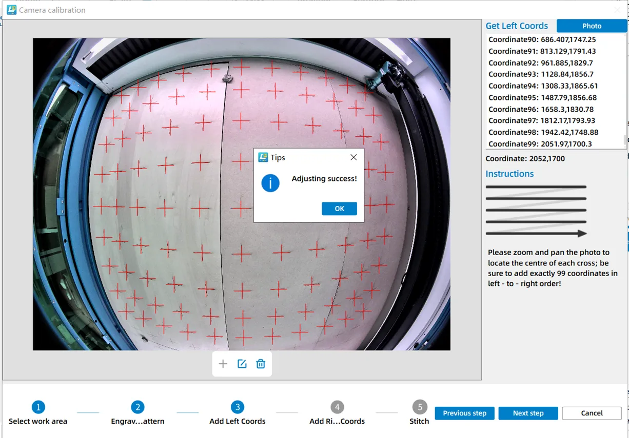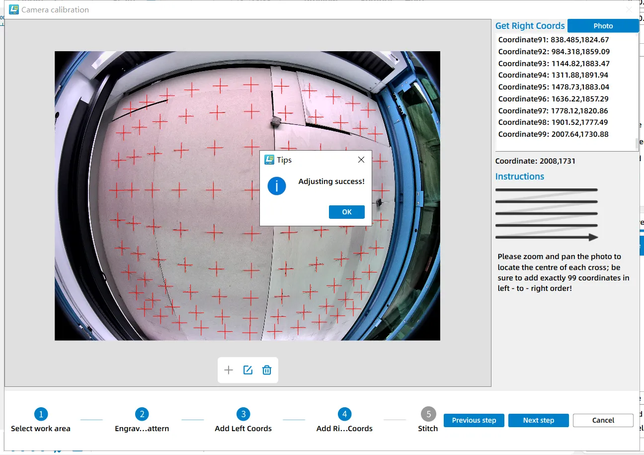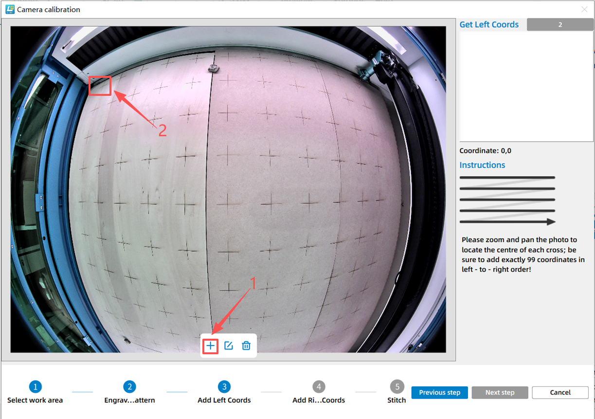 After adding all left cross coordinates, click "Next step" to proceed to add right cross coordinates.