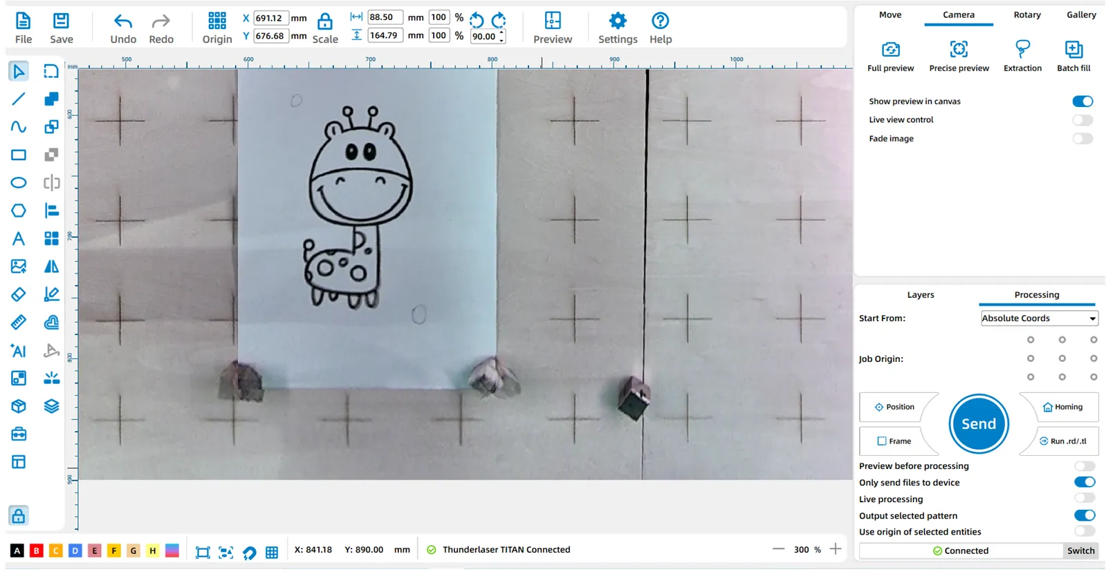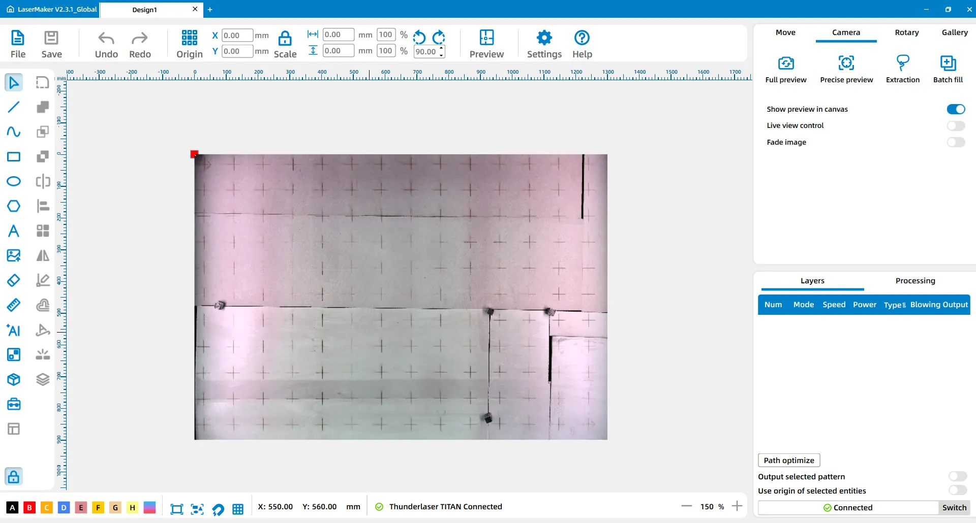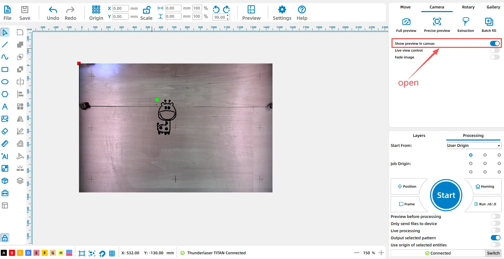 Every machine in the TITAN series has a camera or dual camera, as well as a calibration file. Import the calibration file directly to use the camera.