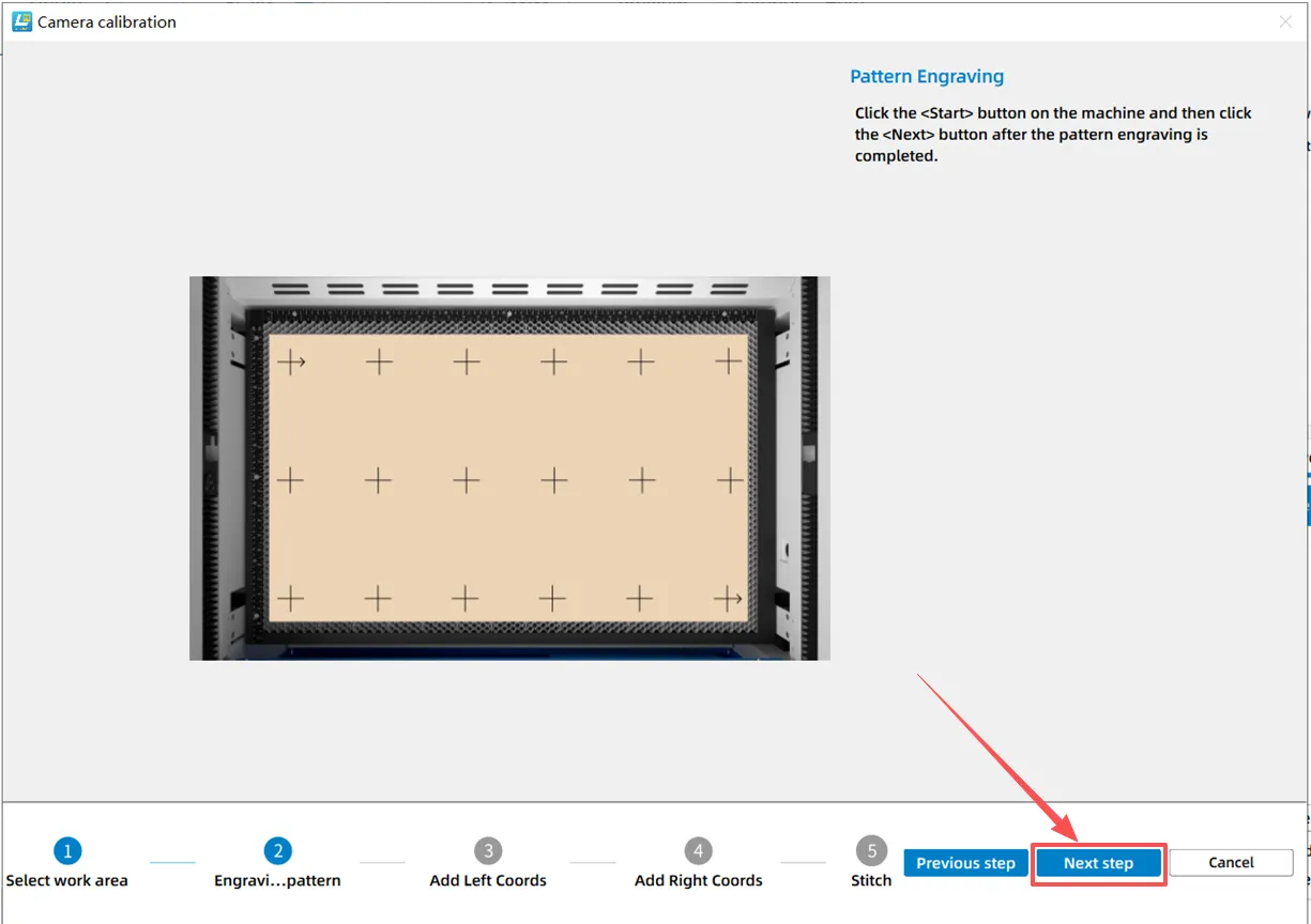 14. Next, place a wooden board, move the laser head to the upper left corner, and click "Next Step".