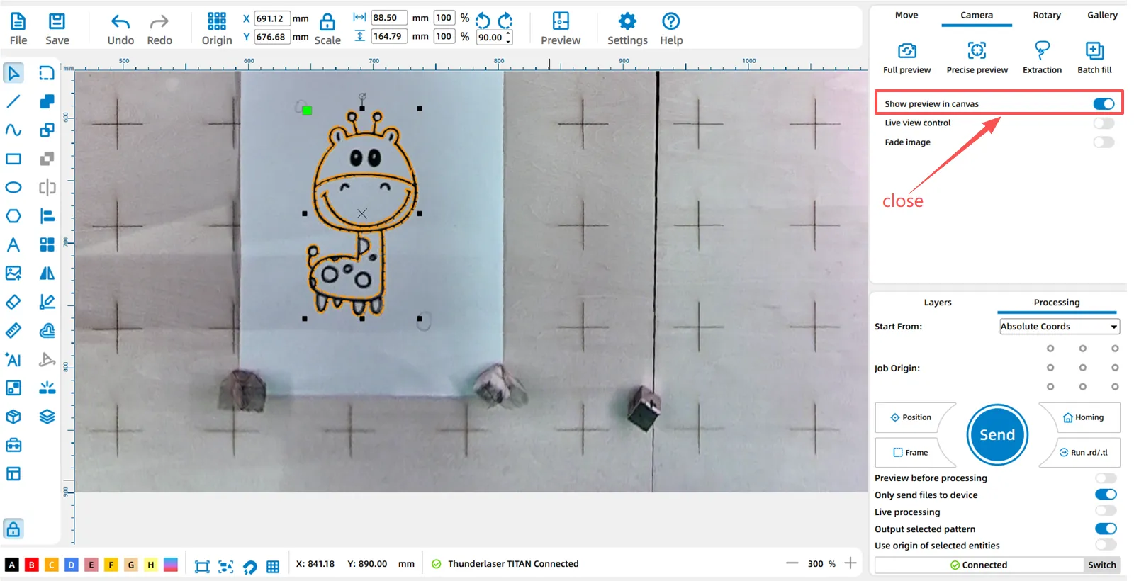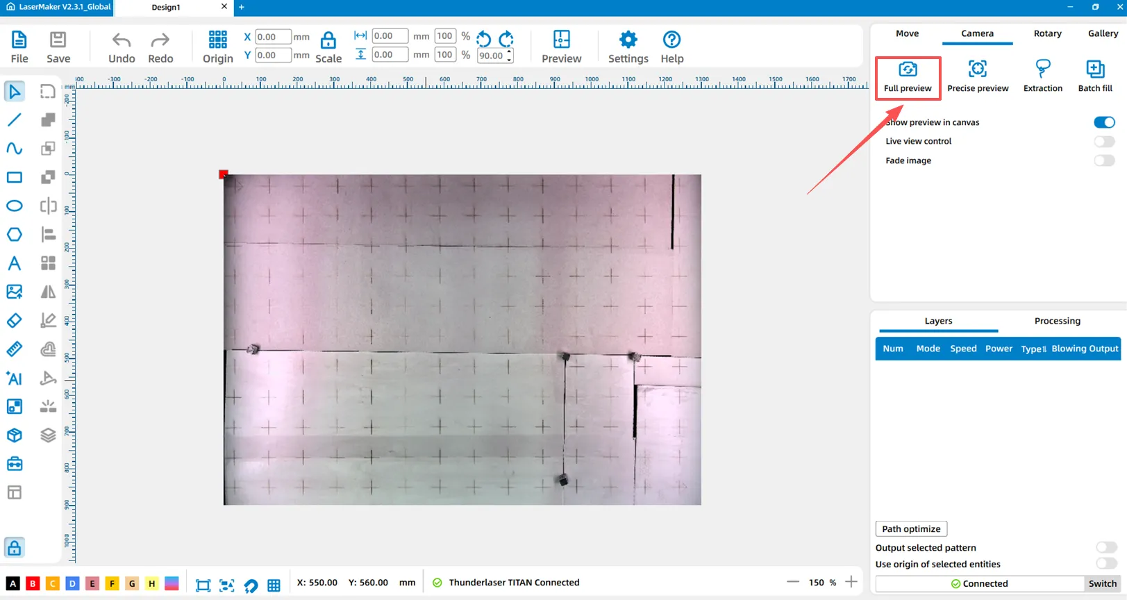 - Next, remove the paper that was just placed on the work platform, then re-enable "show preview in canvas", and click "Full preview" to update the canvas content.