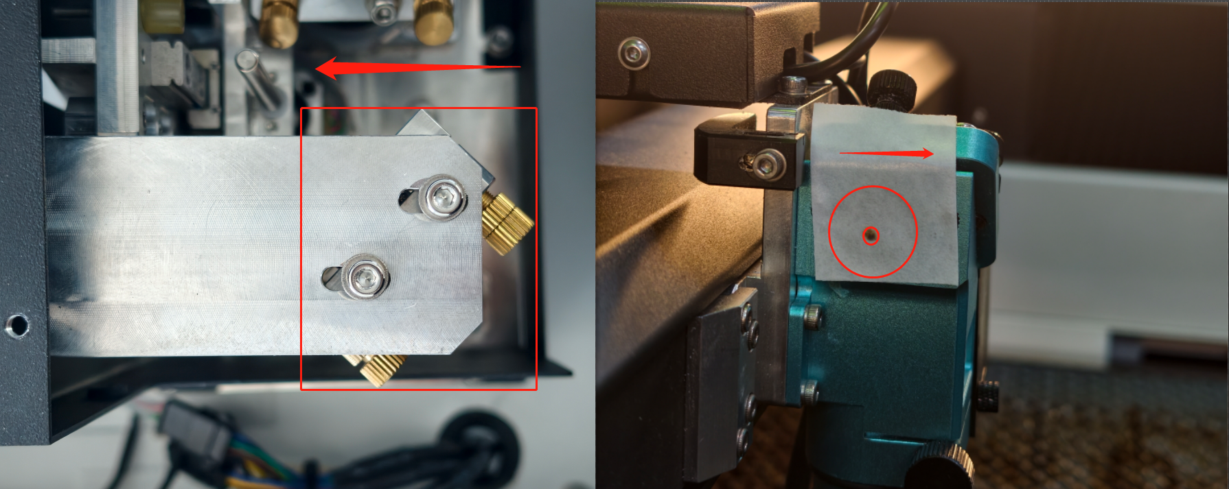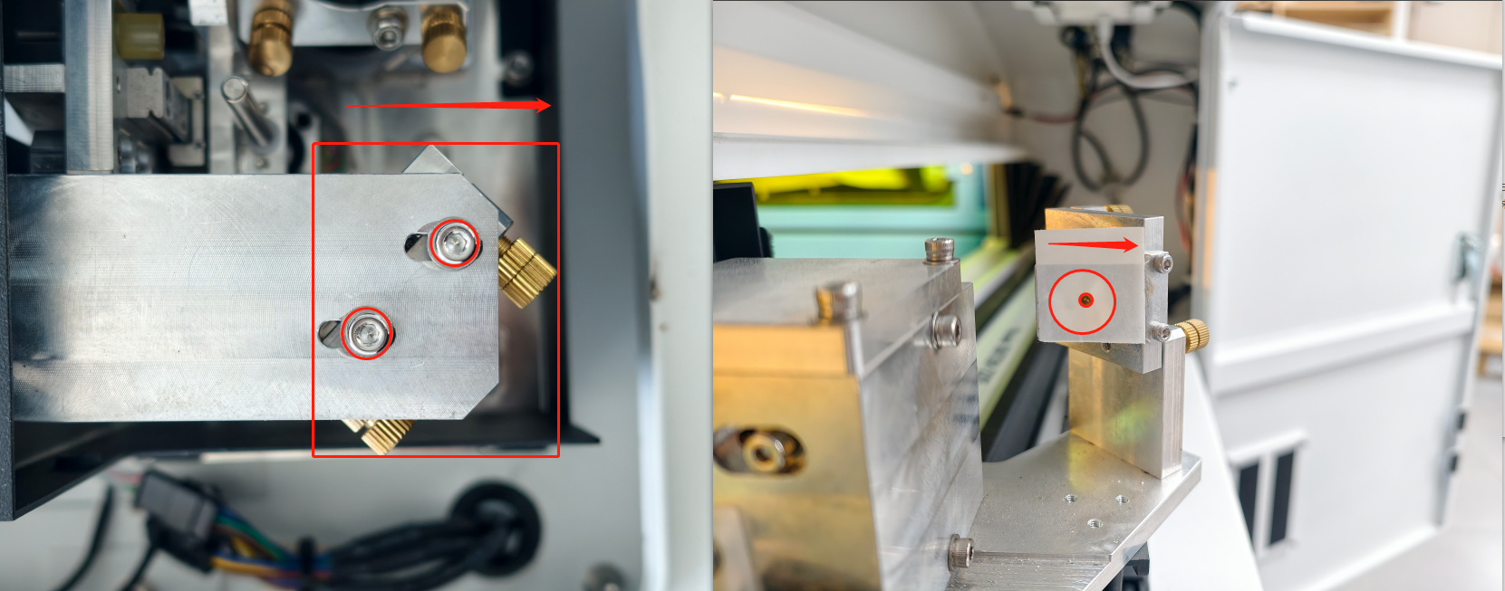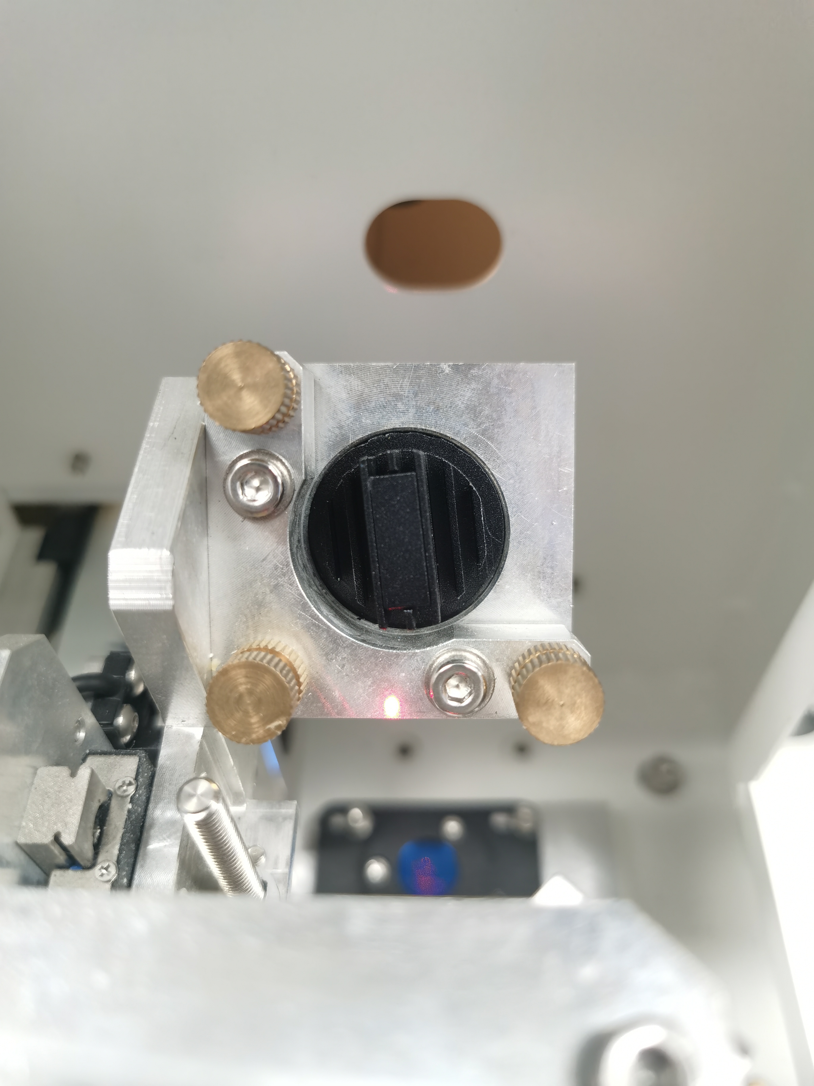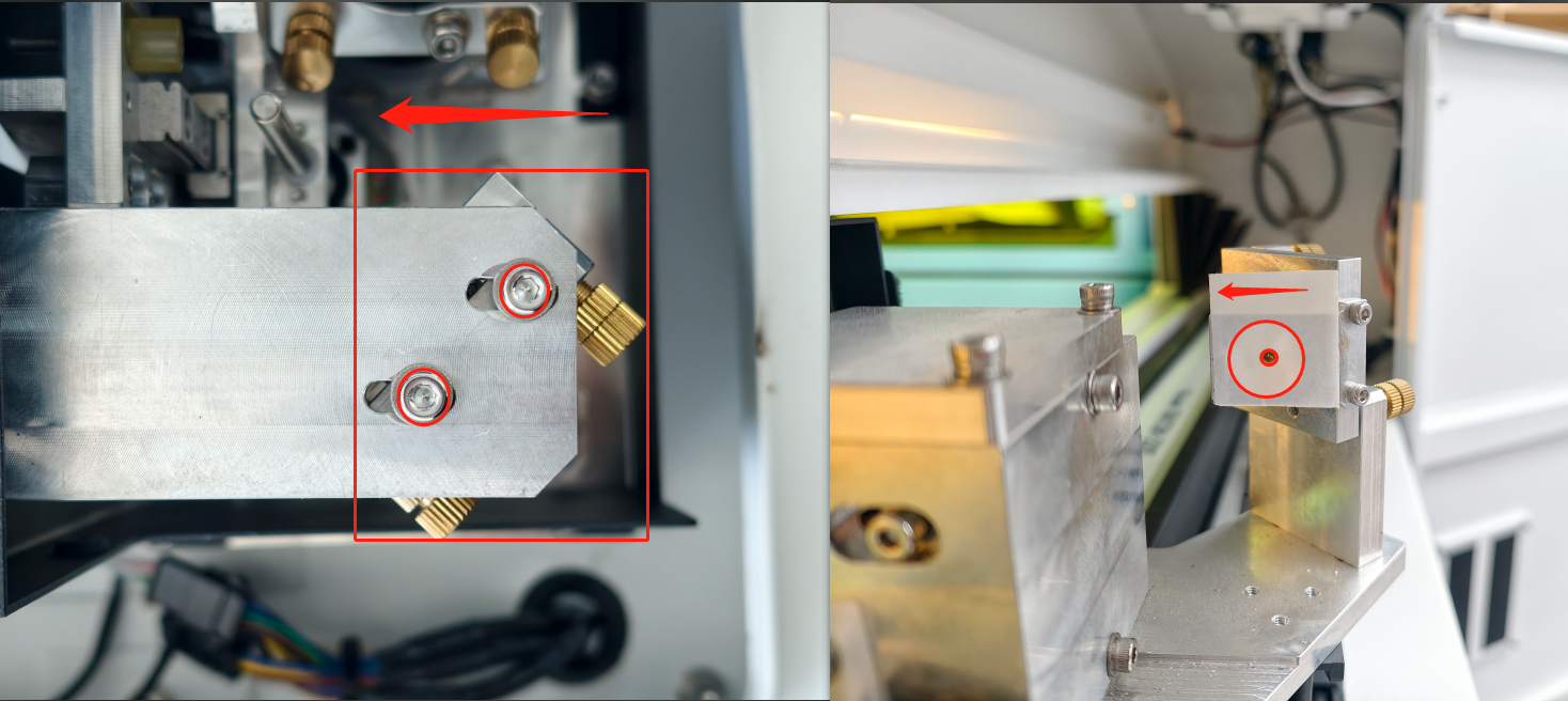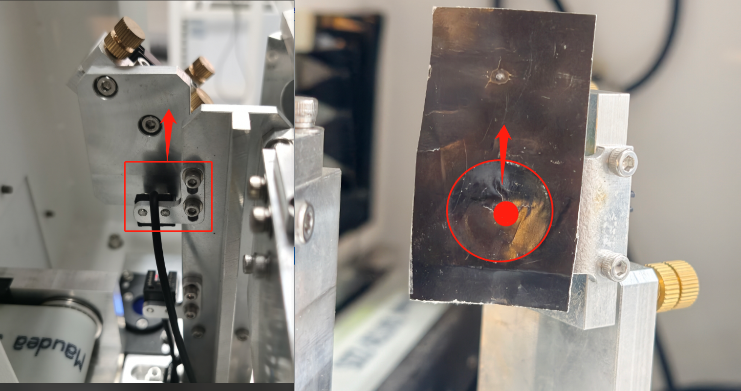 ⚠️Once the alignment is complete, tighten all the bolts of the holder. After tightening, pulse again to verify whether the spot has shifted. |