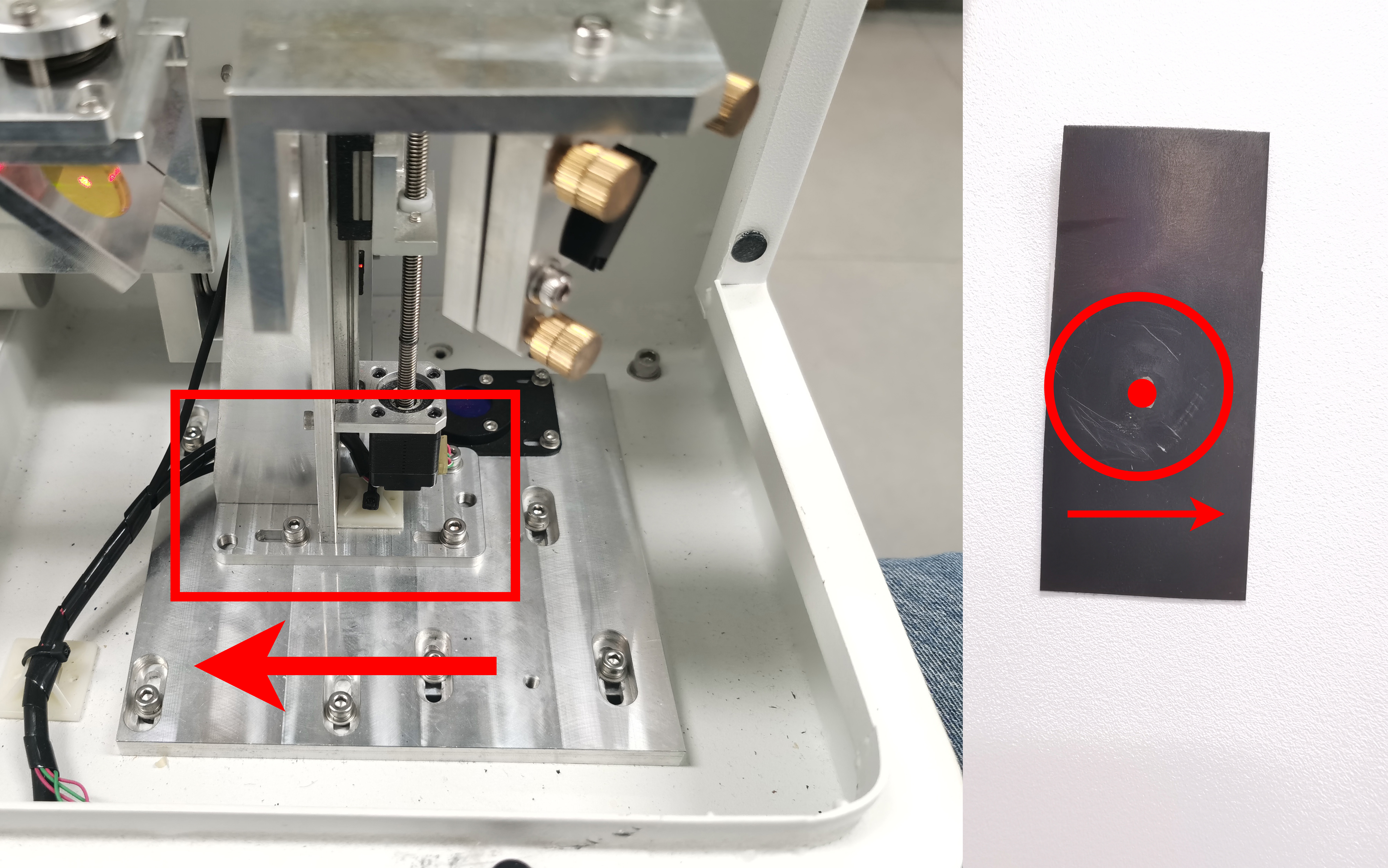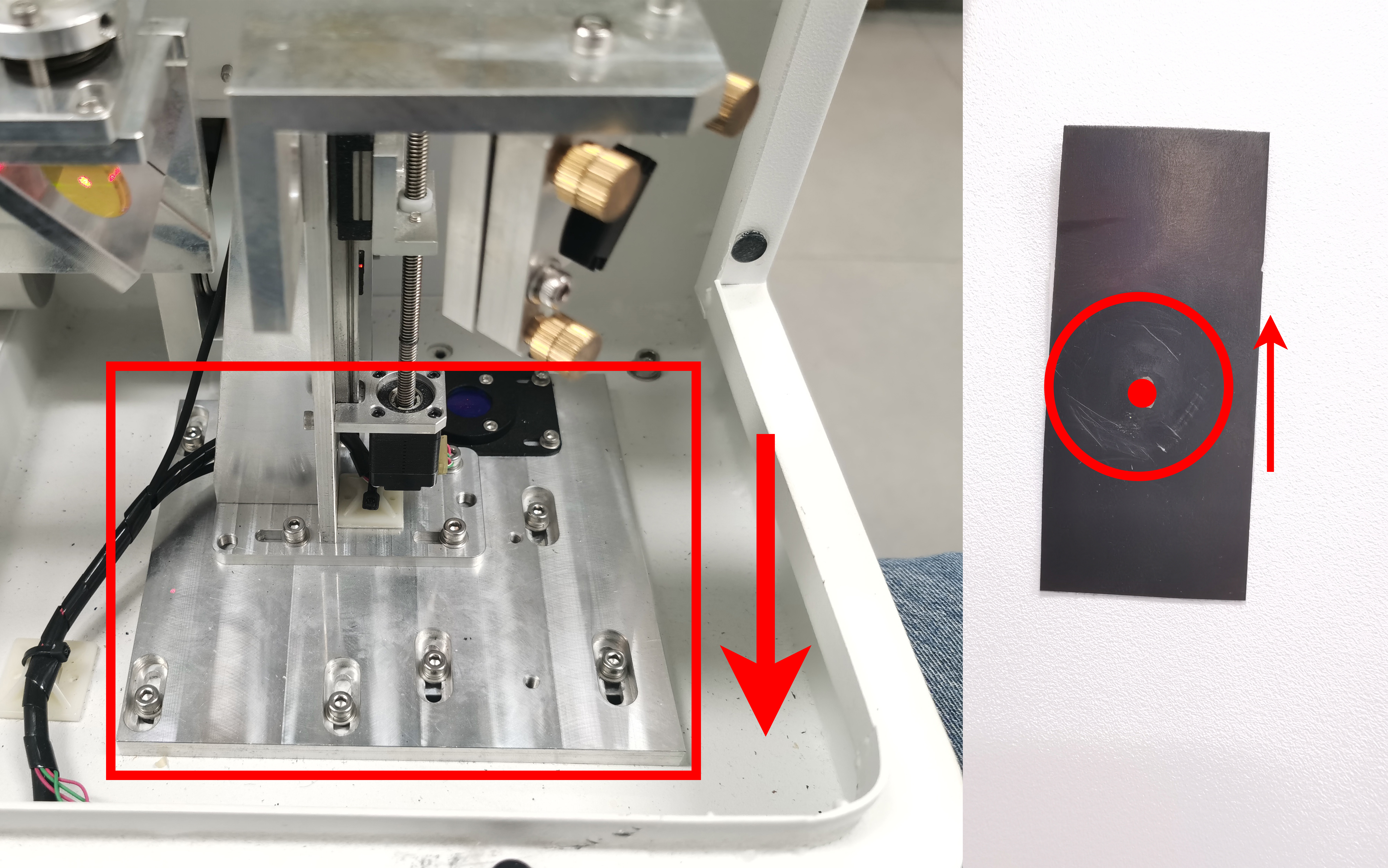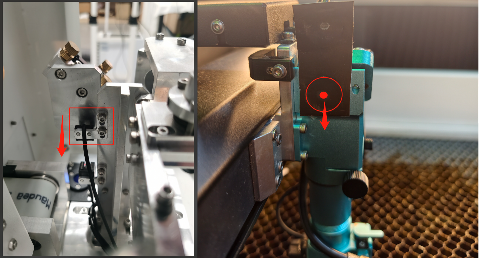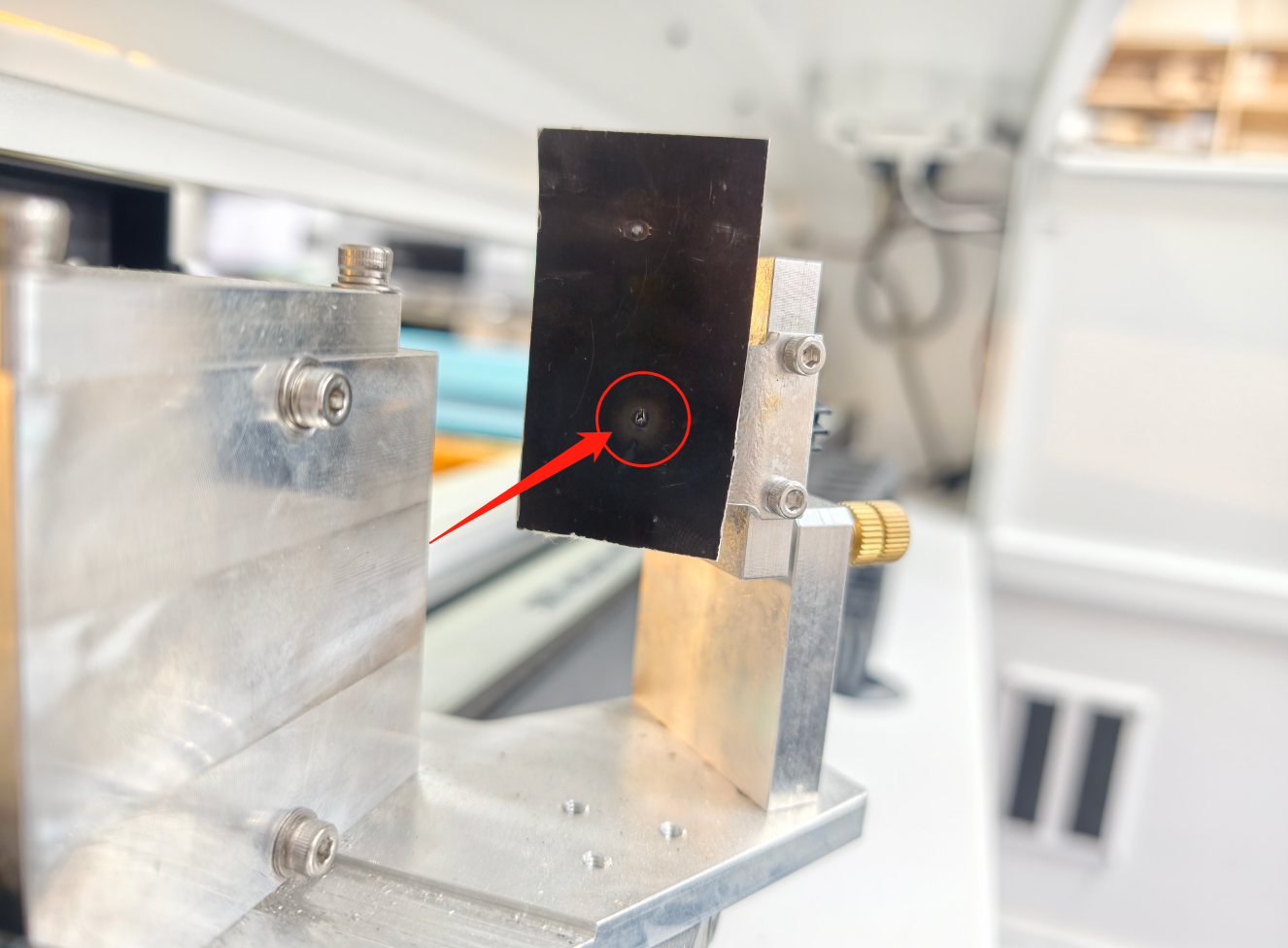 ⚠️Once the alignment is complete, tighten all the bolts of the holder. After tightening, pulse again to verify whether the spot has shifted. |