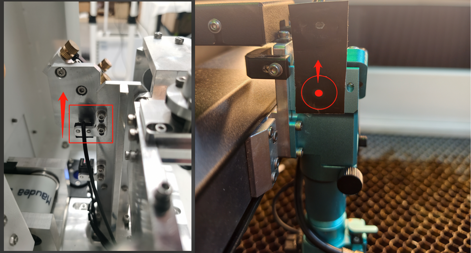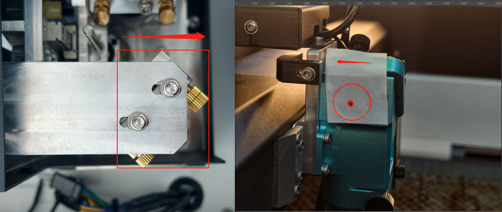 ⚠️CRITICAL LOCK-DOWN: After aligning the fiber laser, fully tighten all bolts and nuts on Mirror 2’s holder. During the subsequent CO₂ beam alignment, do not adjust Mirror 2 to avoid disturbing the previous steps of fiber beam alignment.