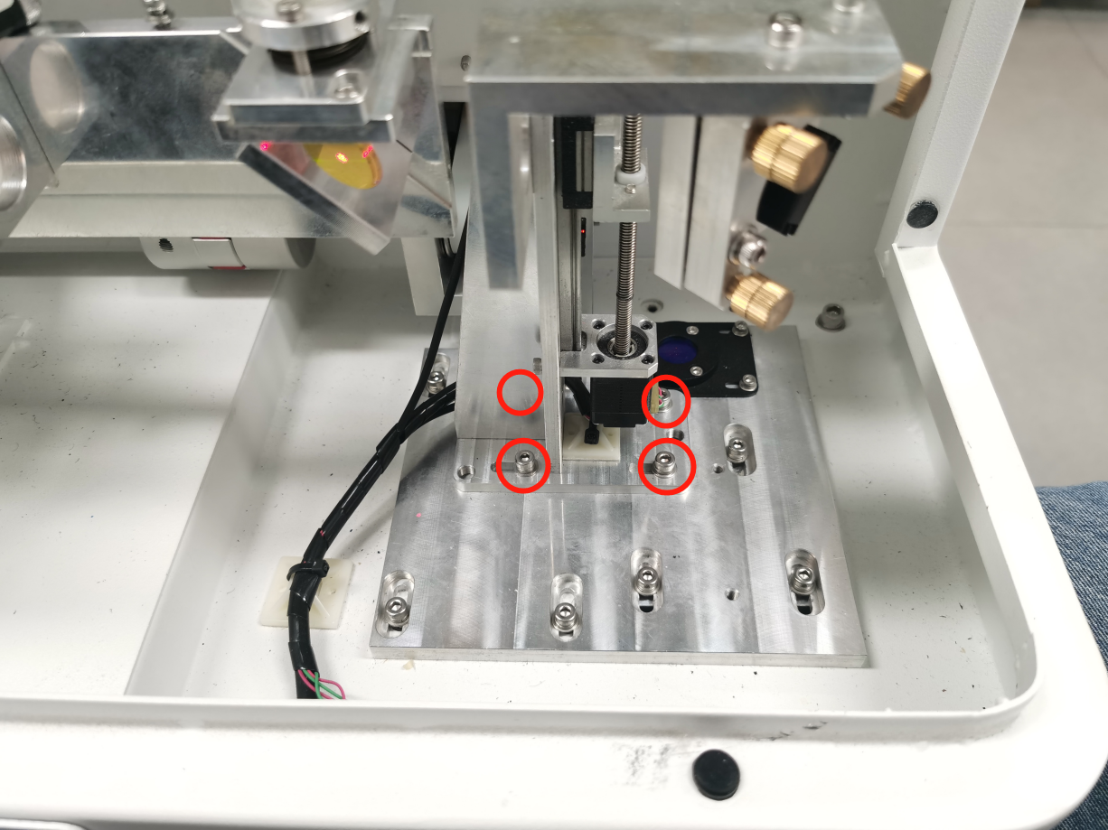Loosen 4 bolts on the Fiber Laser Output Head Holder. |