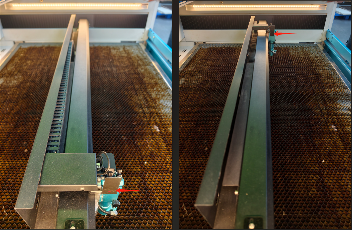 - Near Pulse: Move the gantry (Y-Axis) so Mirror 2 is closest to CO2 Mirror 1 (Top-Left) => Pulse.