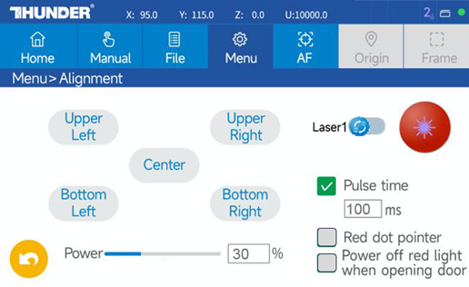 - Select “Center” to move the laser head to the center.