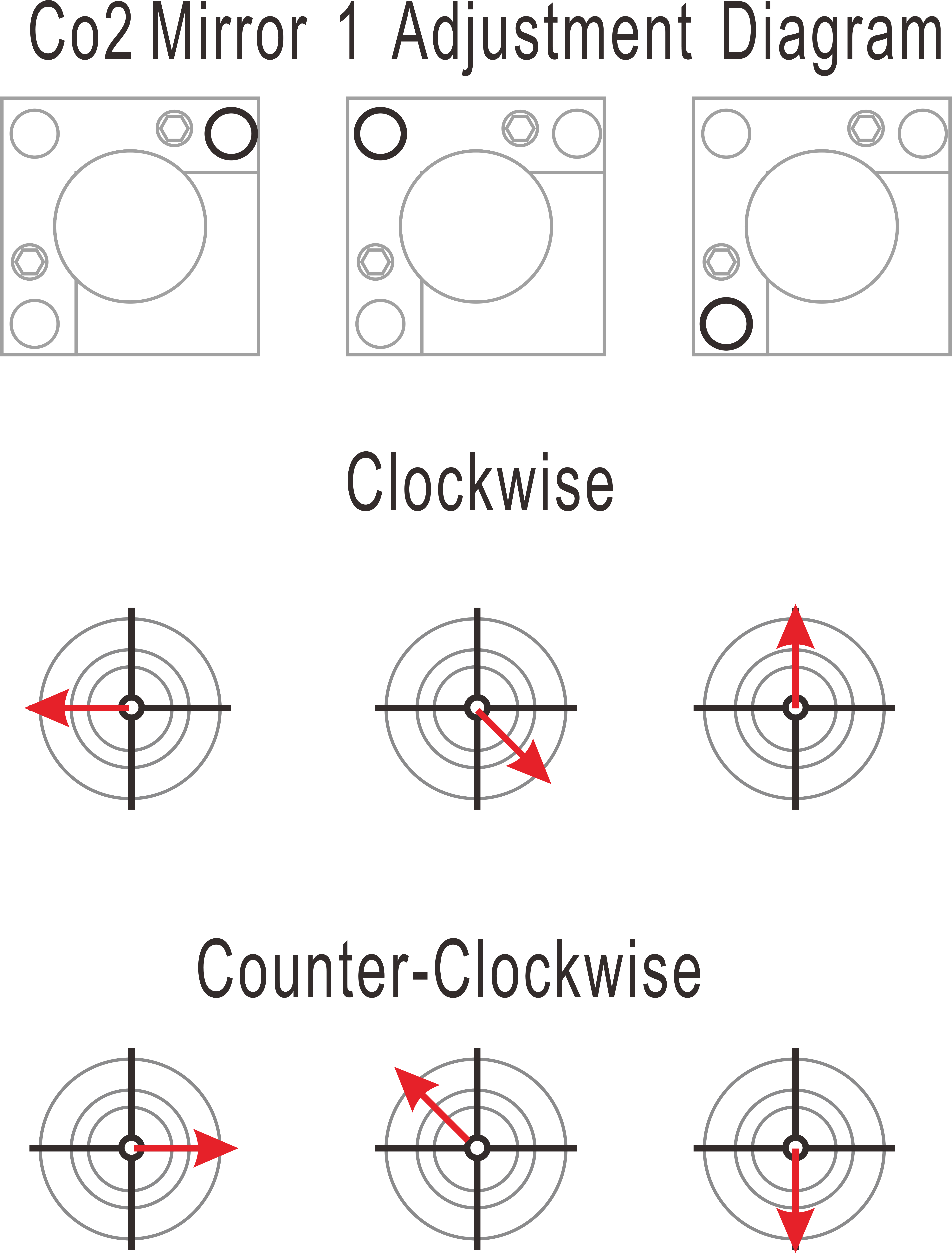 - Fine Tuning: Since CO₂ Mirror 1 is far away (from Mirror 3), small screw adjustments create large beam shifts. Use very fine adjustments.