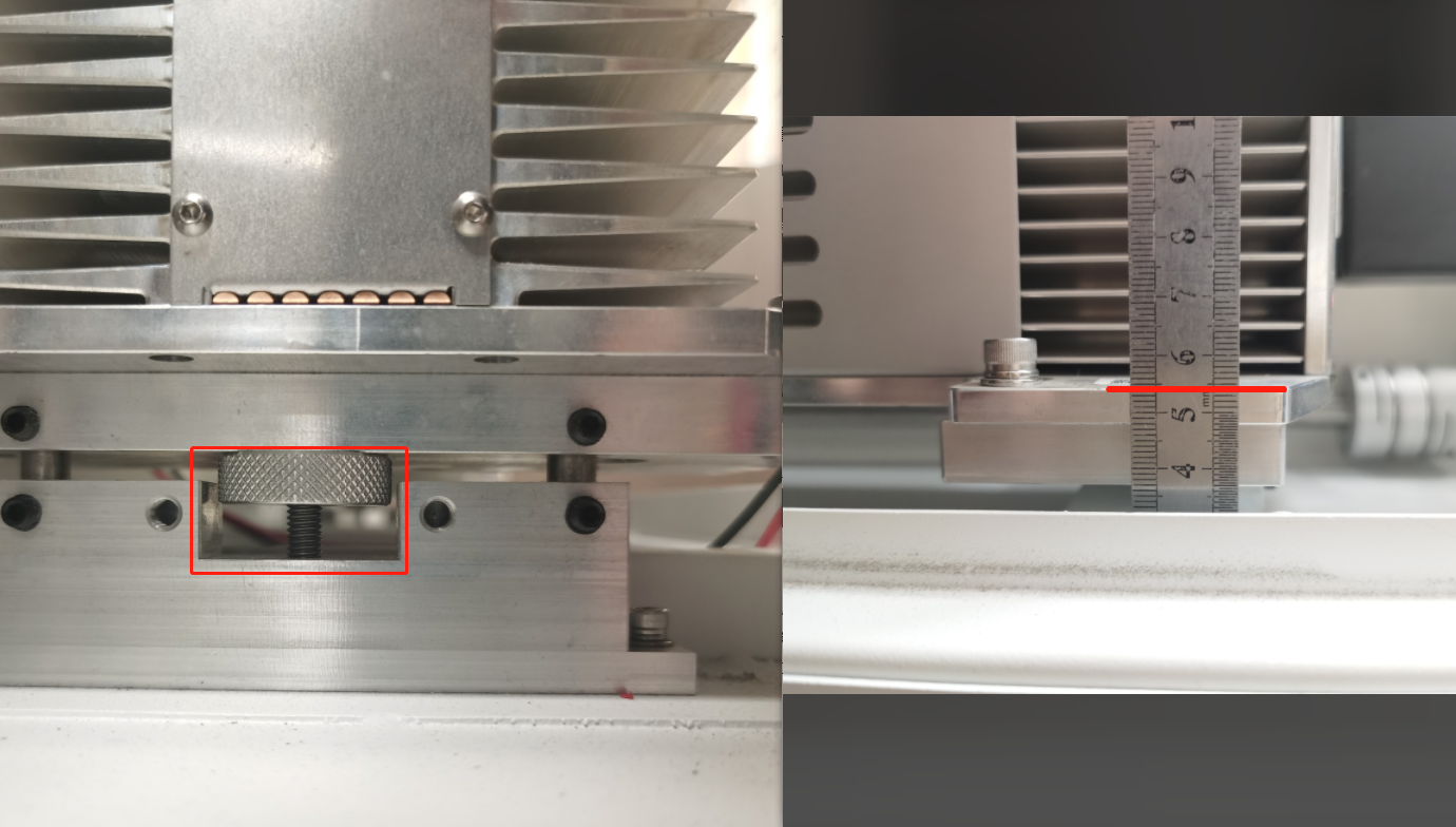 ⚠️Once the alignment is complete, tighten the black bolts of the RF Tube Holder. After tightening, pulse again to verify the pulse mark has not shifted. |