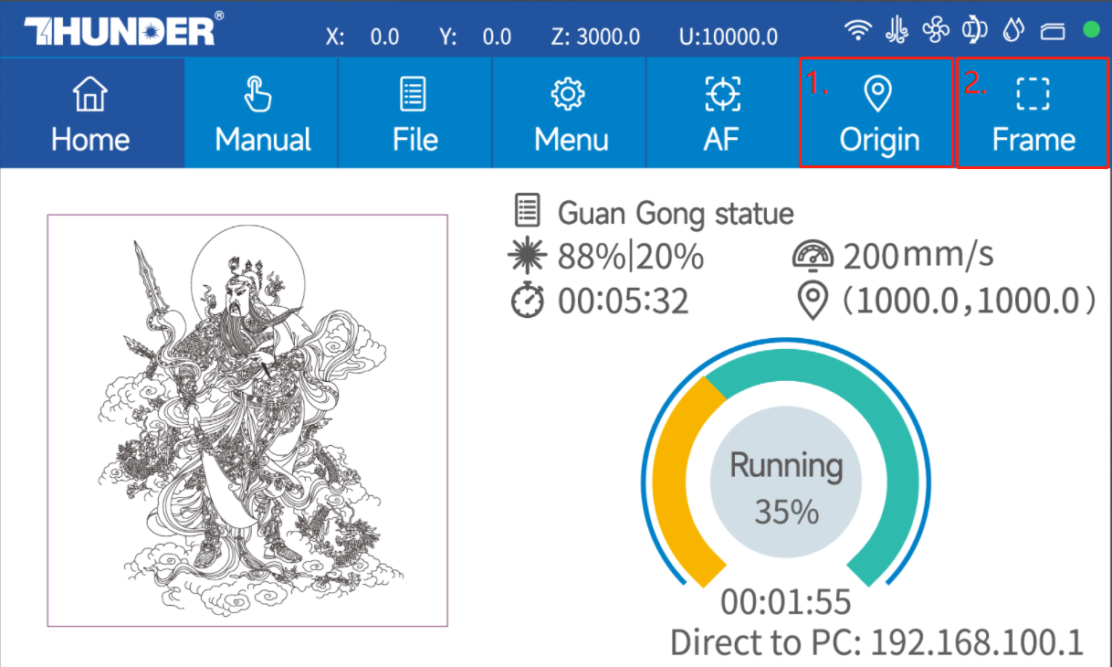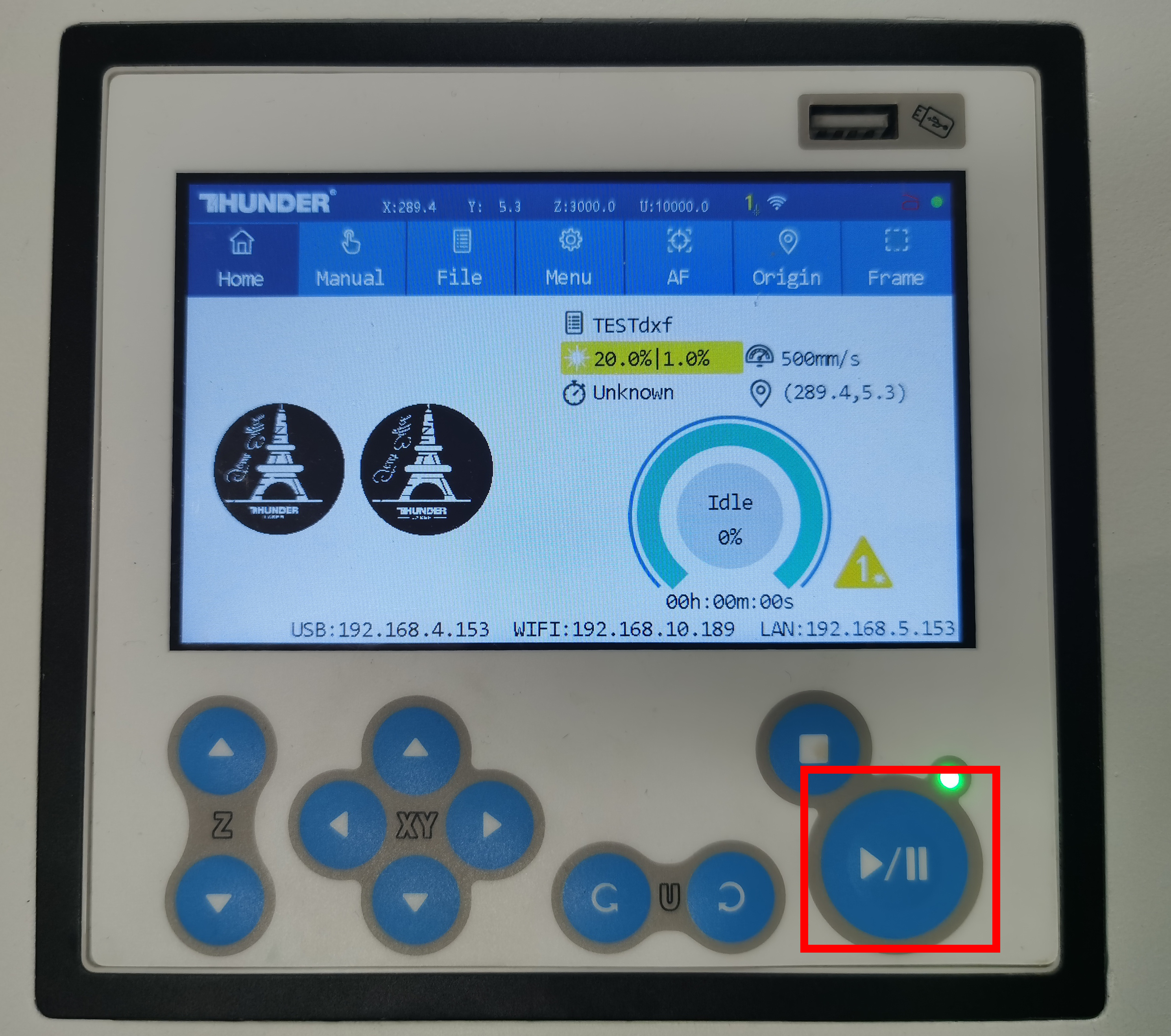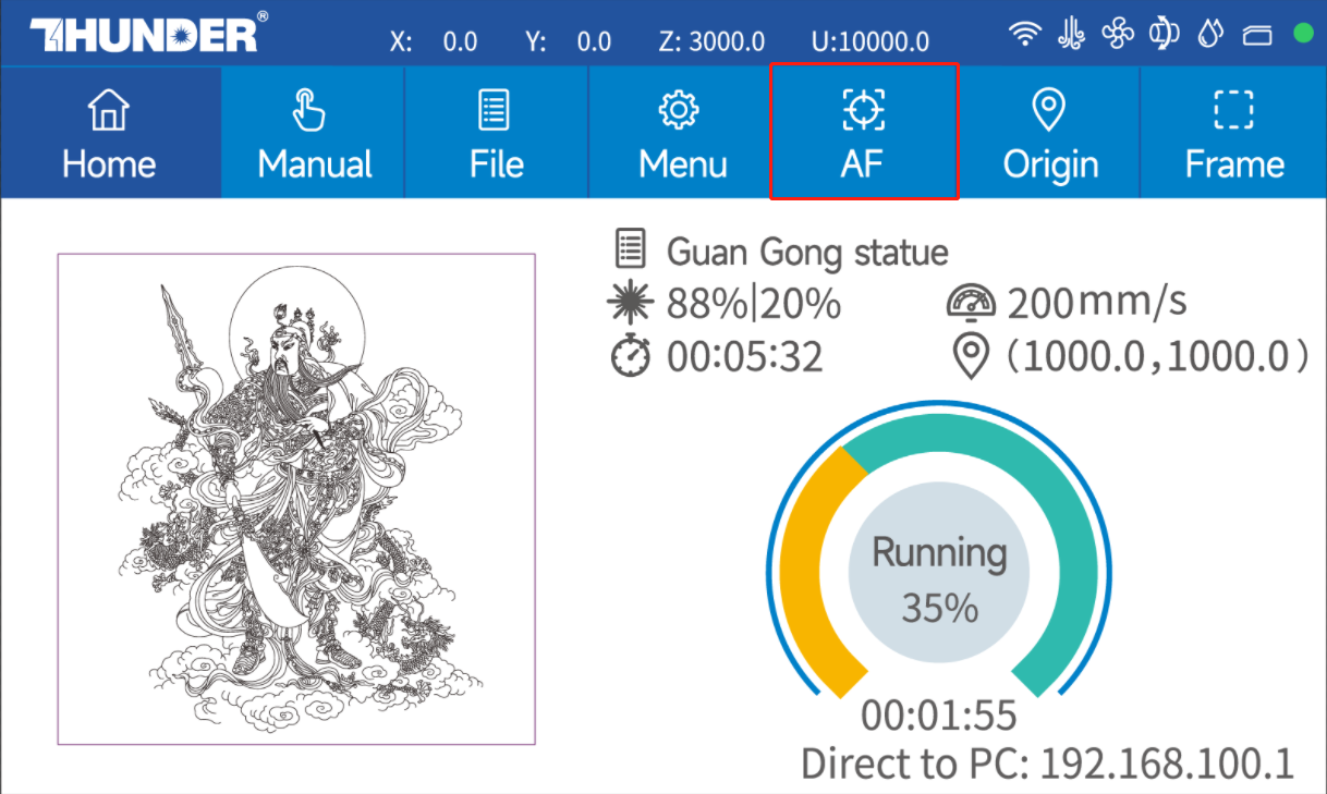 THUNDER is actively communicating with LightBurn to implement this feature in future updates.