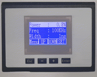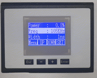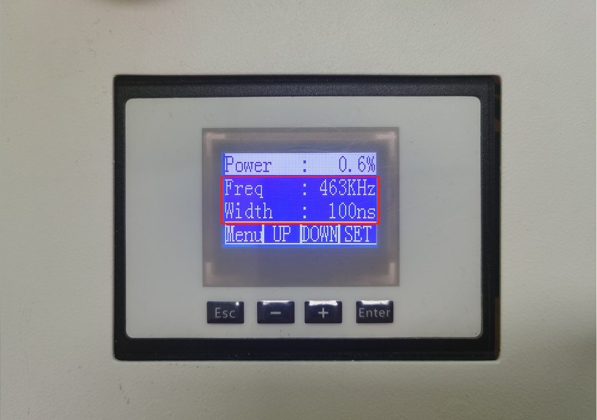 If the processing file has been checked to enable Laser 2, the Pulse Width and Frequency for processing must be set on the Fiber Module.