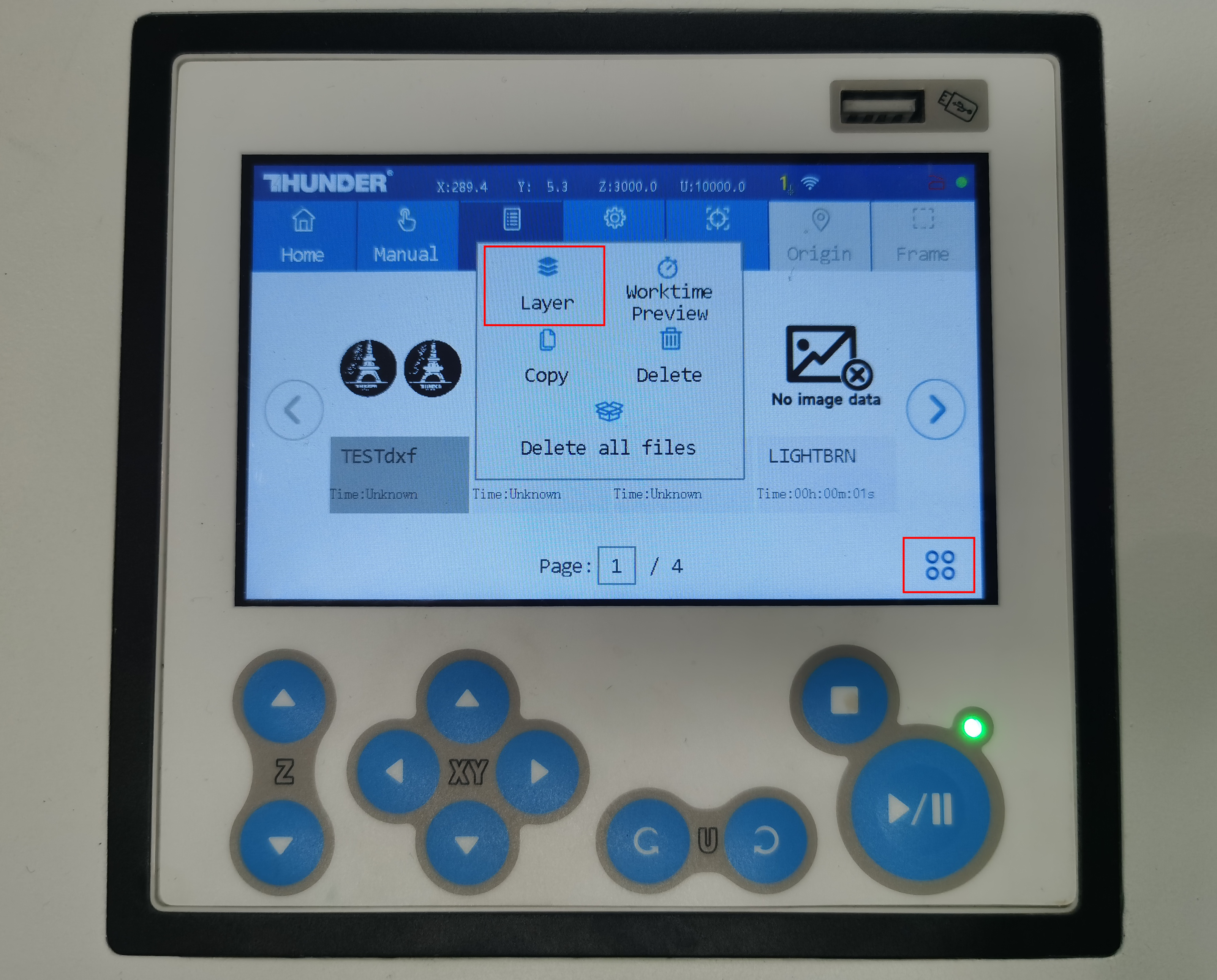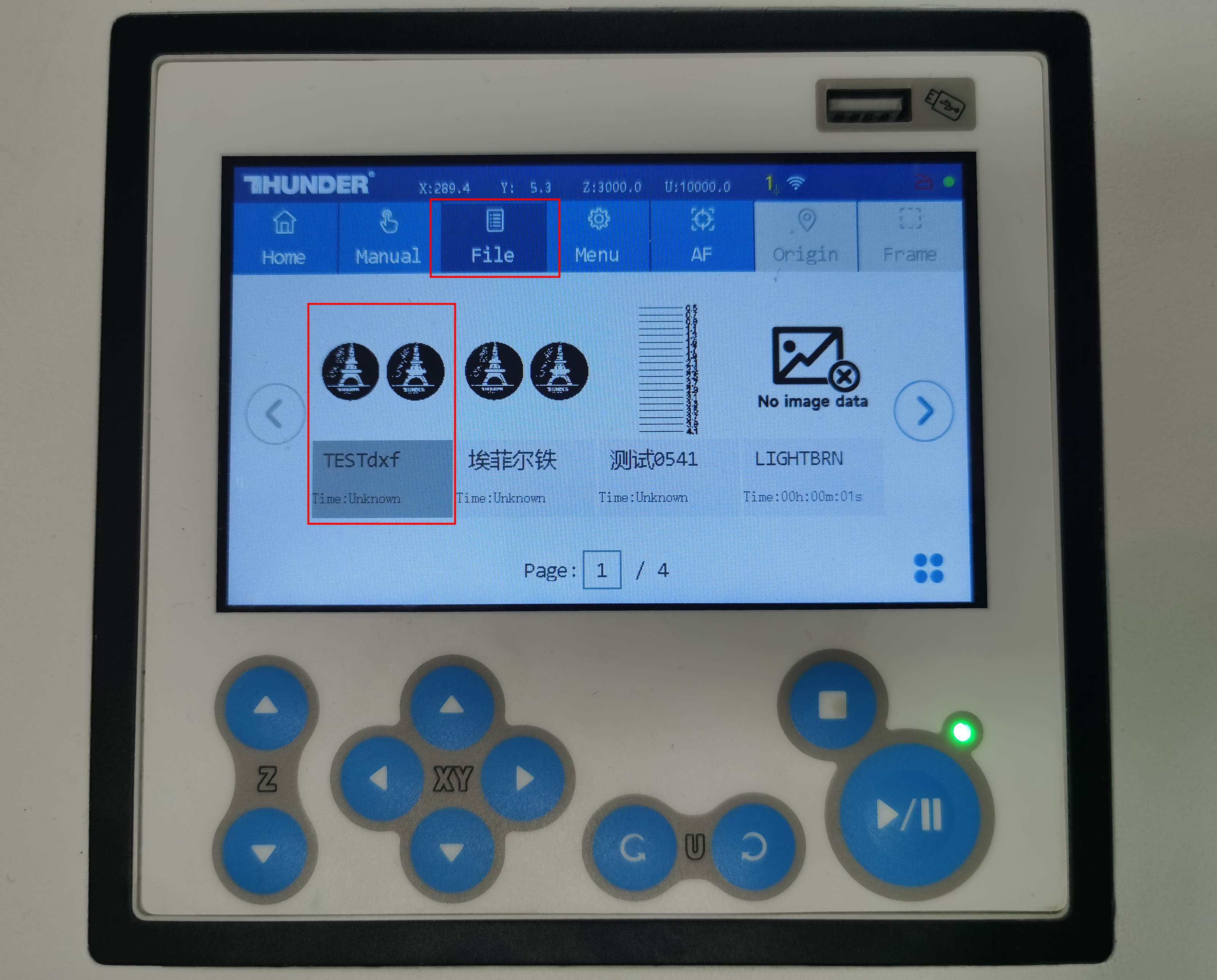 When receiving the file sent by LightBurn, click the File, then press and hold to select the corresponding file.