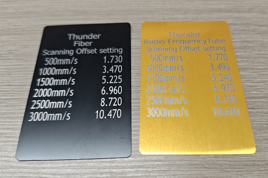THUNDER machines are factory-tested for scan offset setting values, which are recorded on an anodized aluminum card and included in the U-disk that comes with the machine.