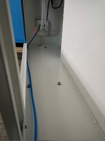 This is the back side of the main air inlet on the rear of the laser. Line #1 is supplied from the compressor at the inlet and travels to the solenoid bank.