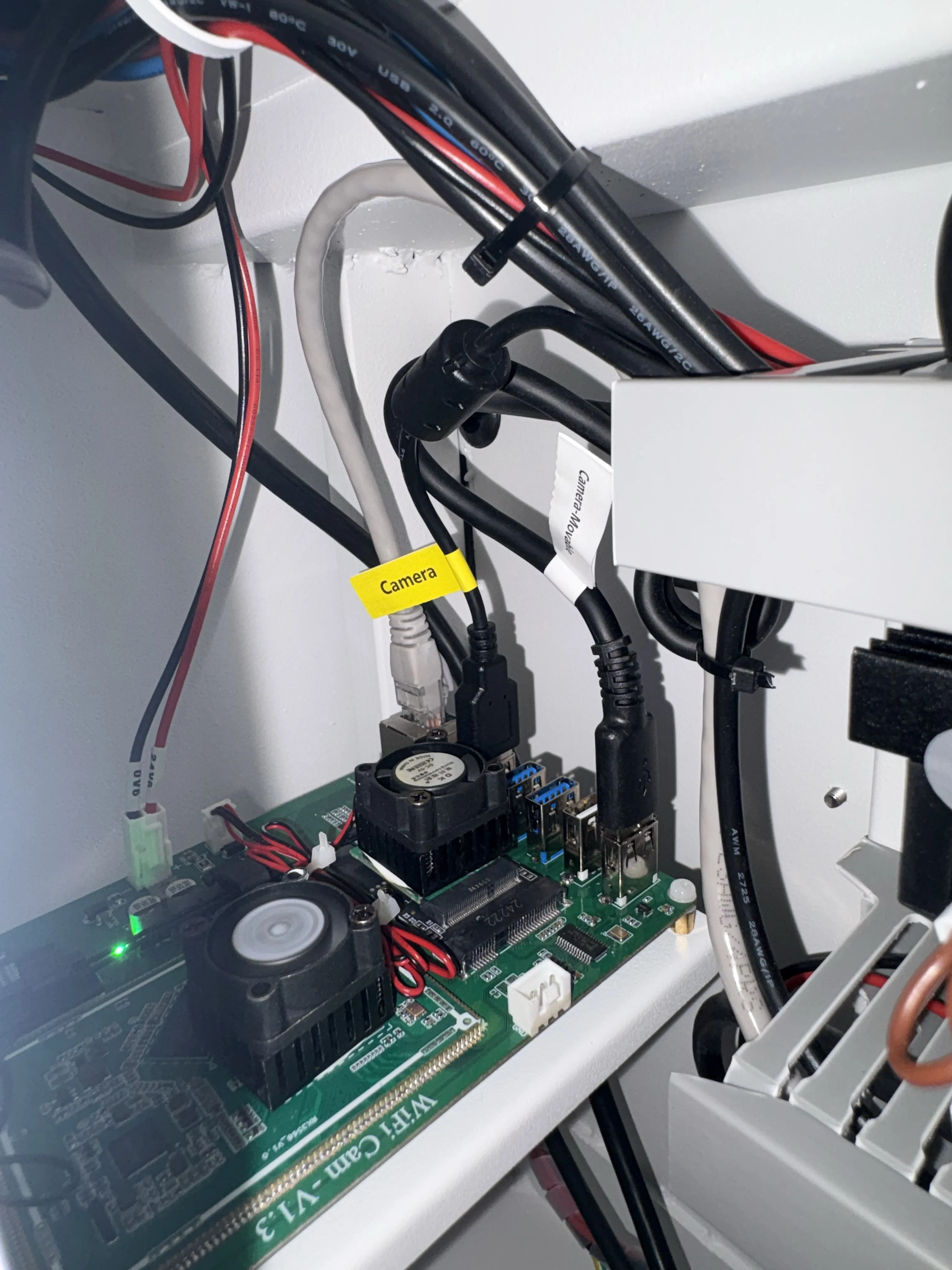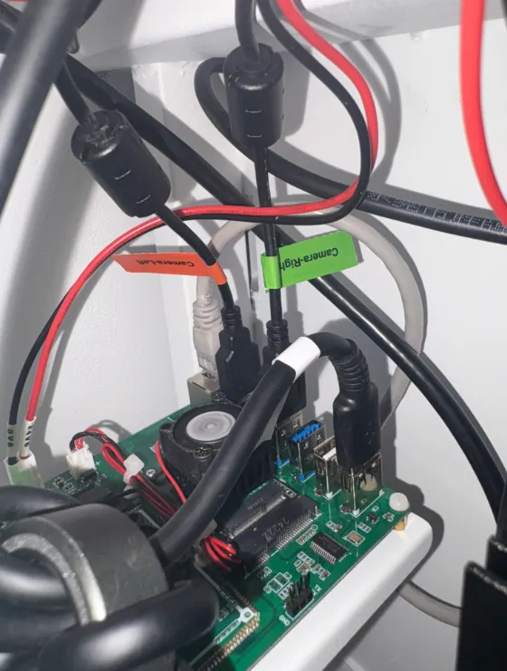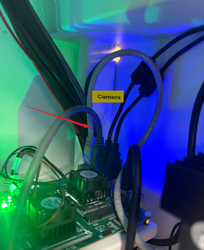 Open the right side door of the machine, and you will find the camera cables.
