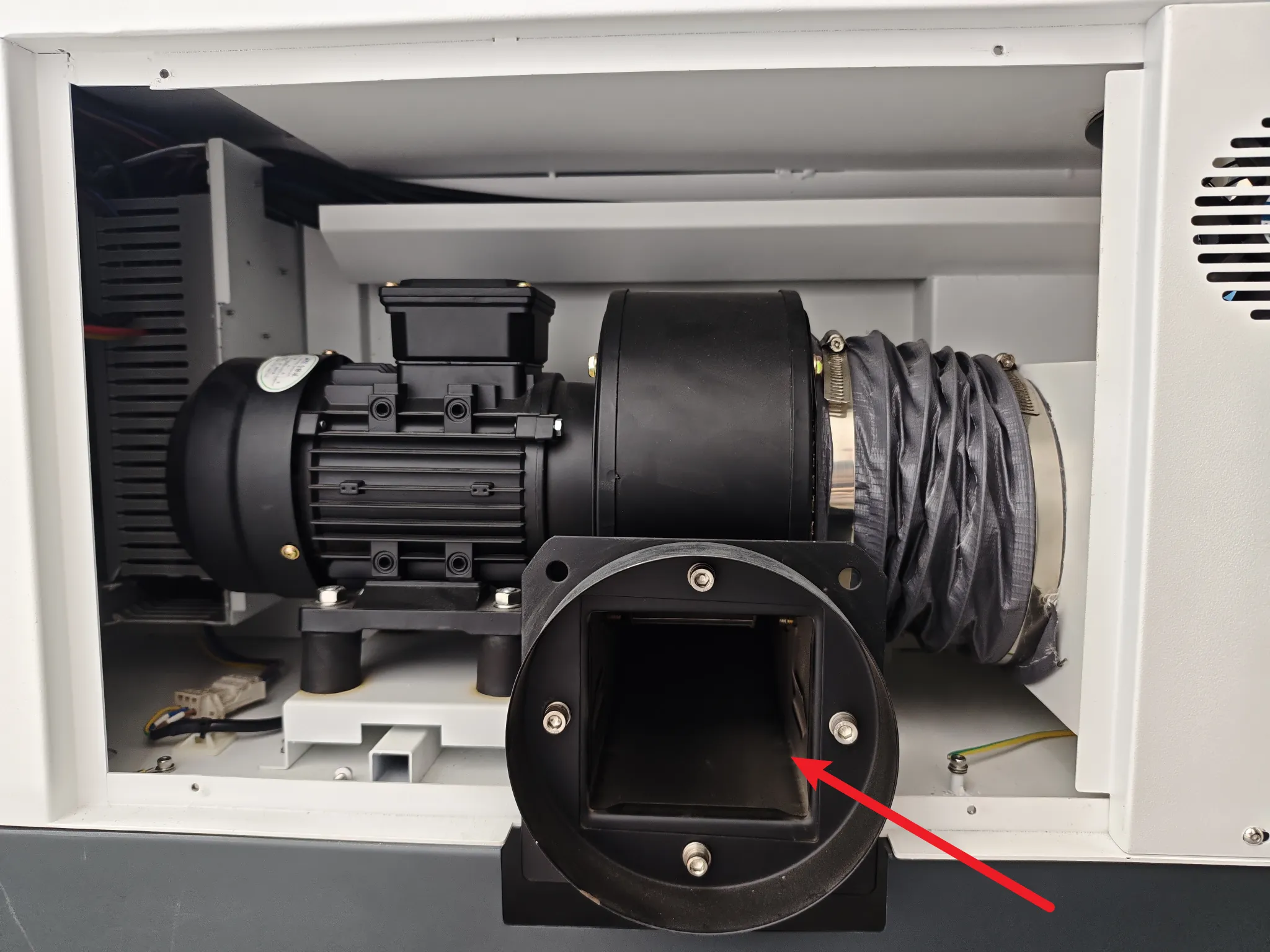 If the machine's built-in air pump cannot provide high enough air assist pressure, an external air compressor can be connected to increase the air assist pressure.