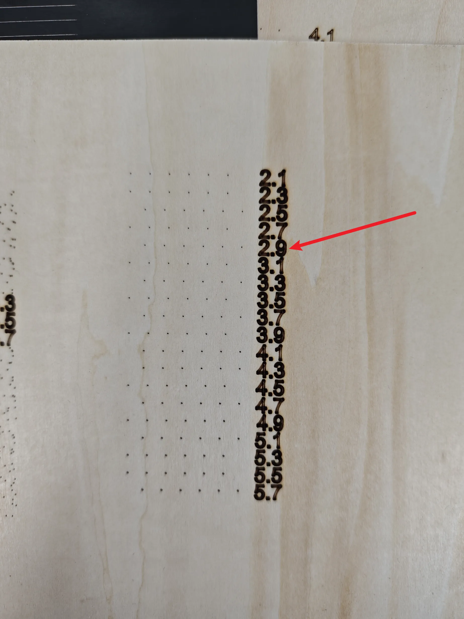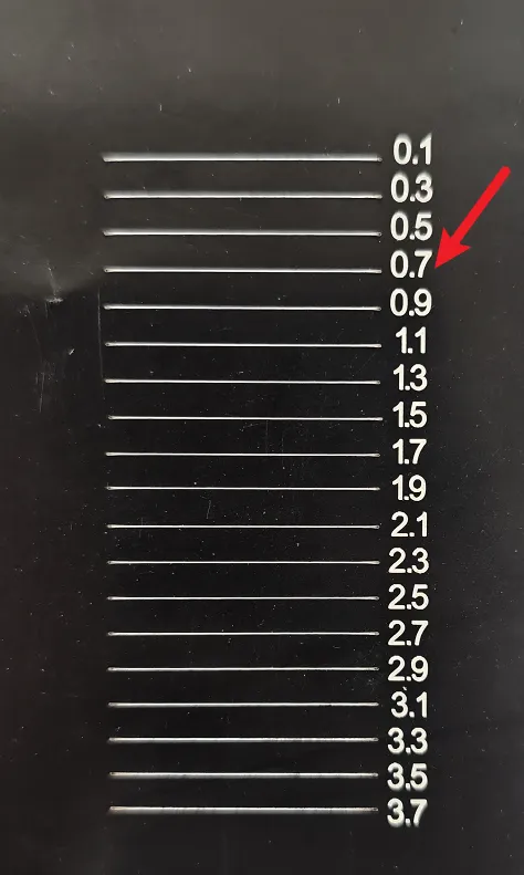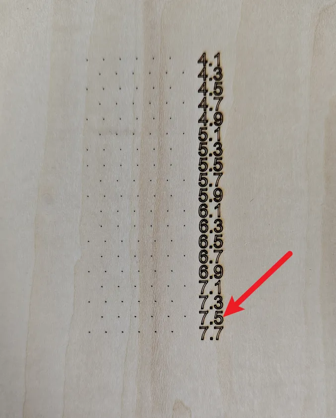 Titan (RF): Select the focus distance that produces the smallest and most perfectly round dot on the wooden board.