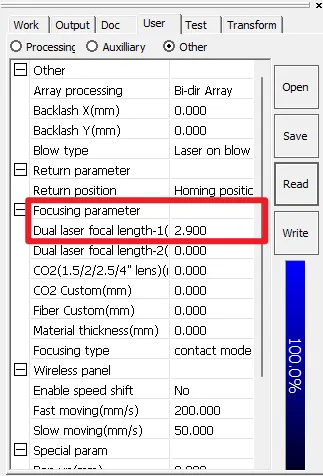LaserMaker and Lightburn do not support multiple focal distances input yet as of the end of 2025, we are closely collaborating with the two software developers to add these parameters and ensure compatibility of the new functions. Before this, please use RDWorks to write different focal lengths onto the controller.