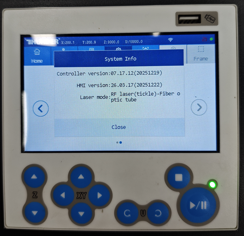 After the controller upgrade is successful, please restart the machine, then go to Menu > System Info on the panel to check if the firmware has been upgraded successfully.