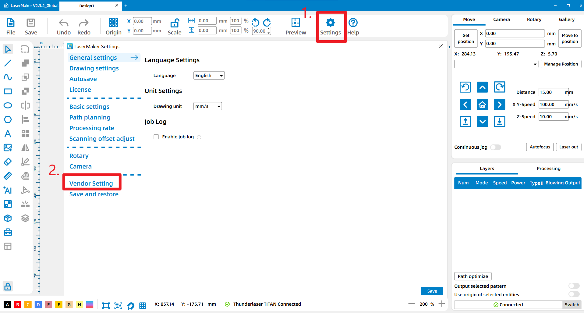 Establish Communication: Ensure that Laser Maker is successfully connected to your TITAN machine and shows an "Connected" status.