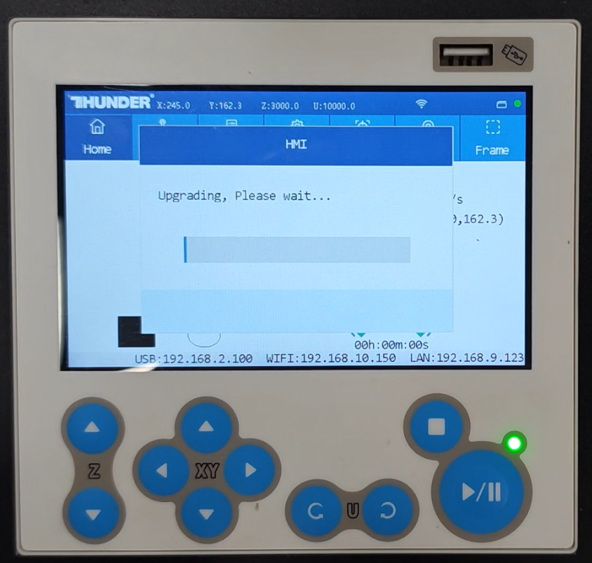 After clicking "HMI Upgrade," the control panel will display "Upgrading, Please wait...". If the upgrade is successful, the panel will show a "Upgrde successful".