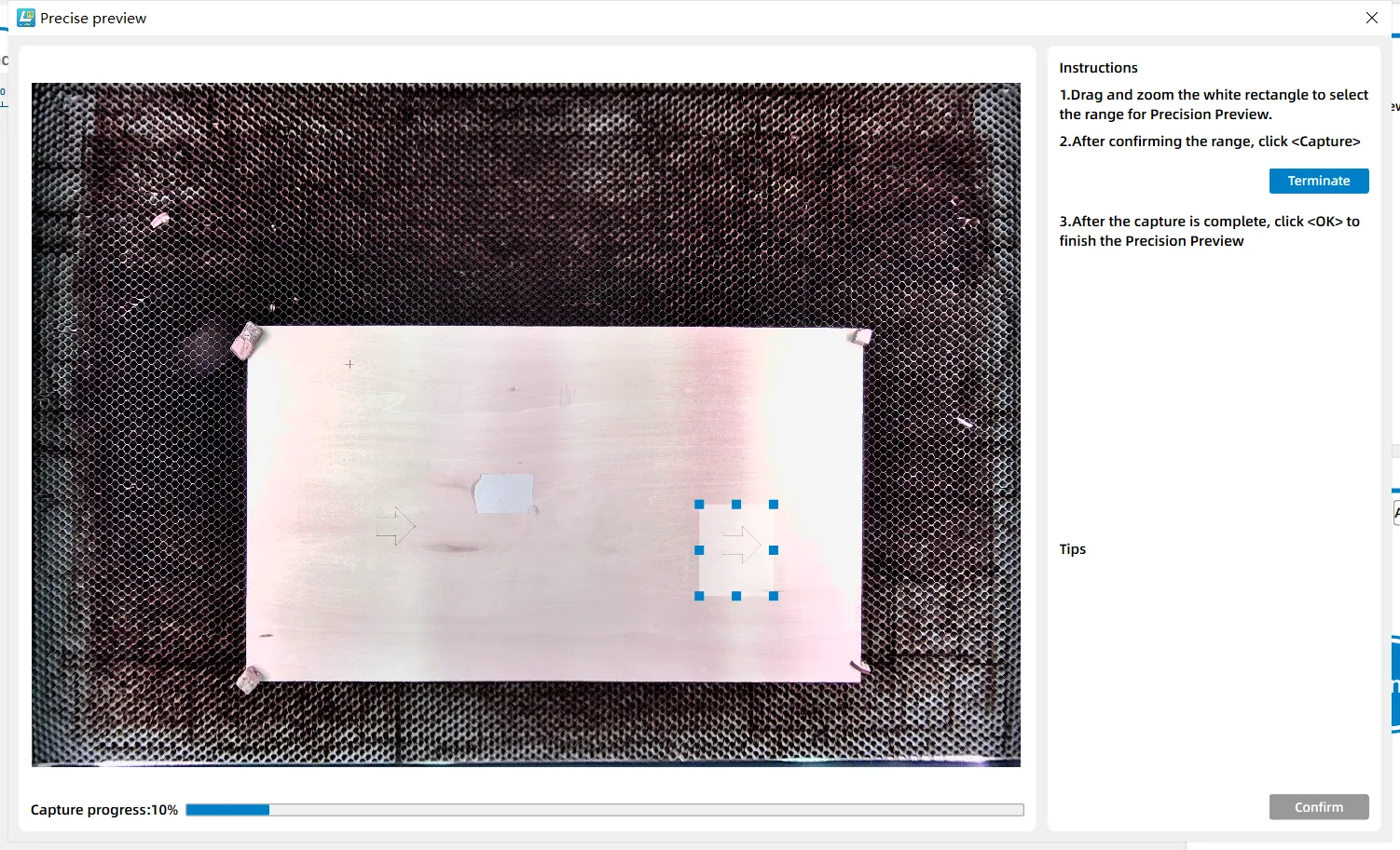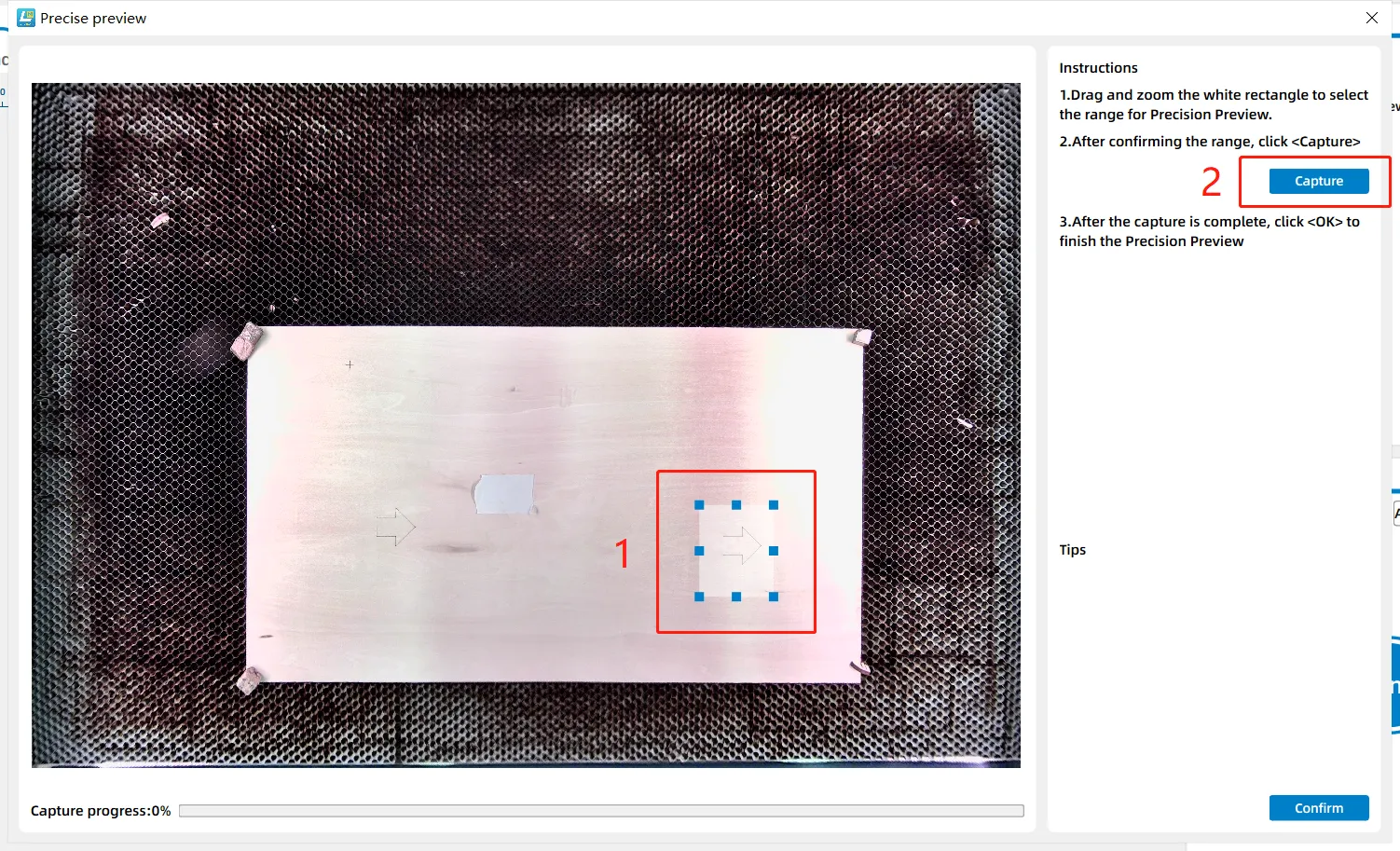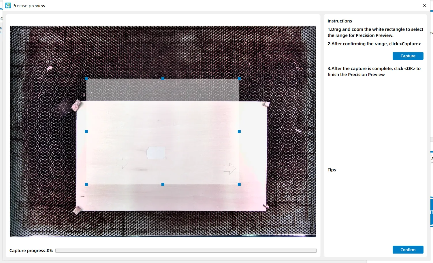 In practical laser processing operations, if the full-frame preview accuracy of the equipment's top cover camera fails to meet precise positioning requirements, LaserMaker's "Precise Preview" feature provides a targeted optimization solution.