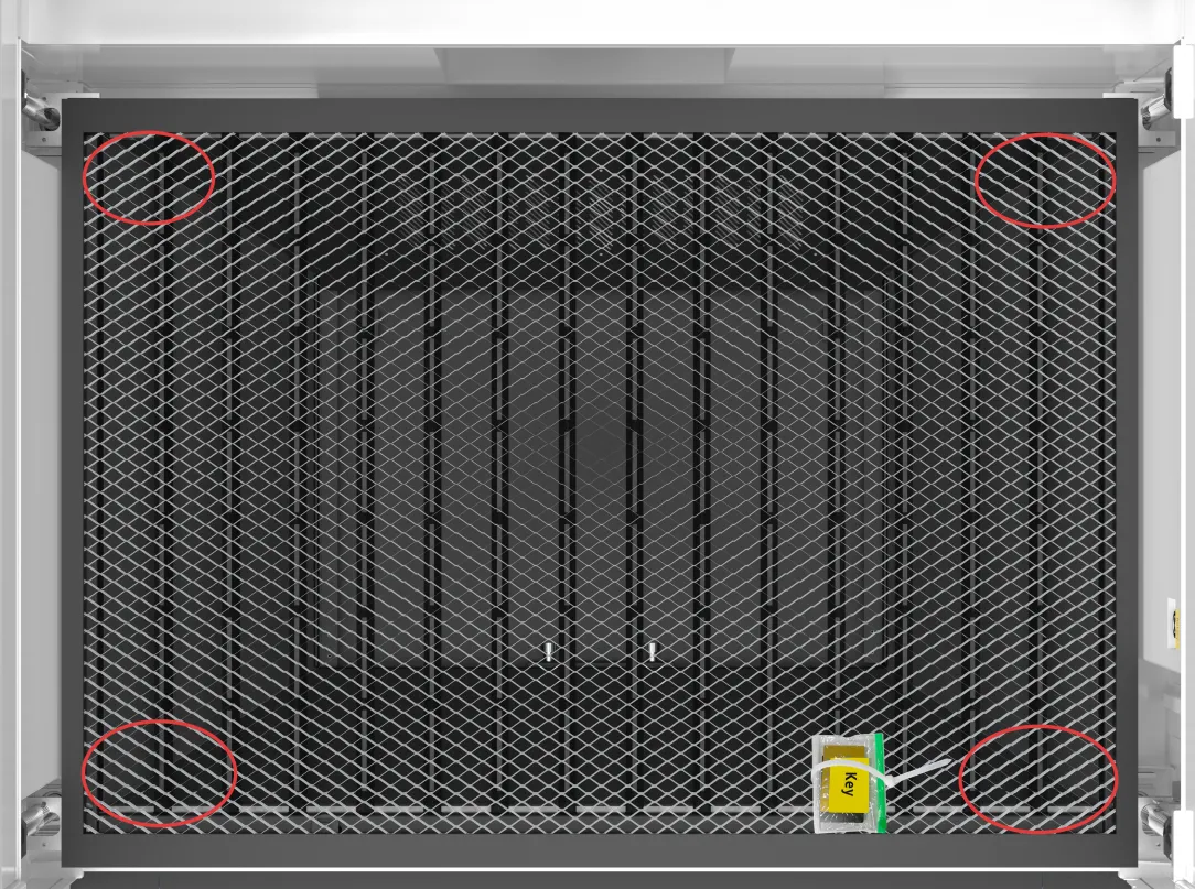 You can open the front door and lift the honeycomb bed in order to locate the screws located at the four corners that hold the platform in place.