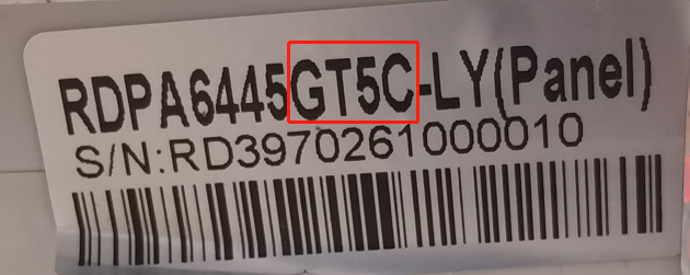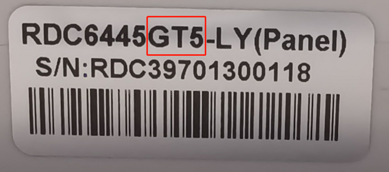 The model label of the Capacitive Touch Screen will have the words GT5C, as shown in the figure below: