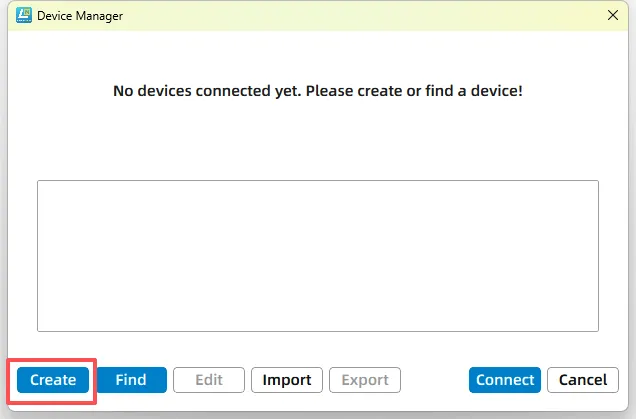 Step 1: Click "Switch" to enter the "Device Manager" interface. | Step 2: Click "Create" to create the device. |