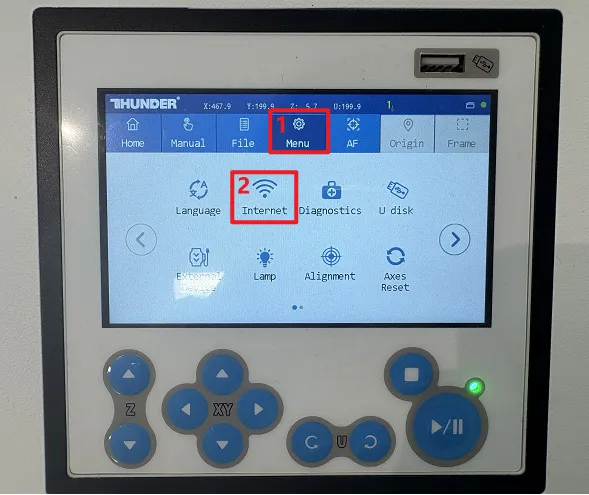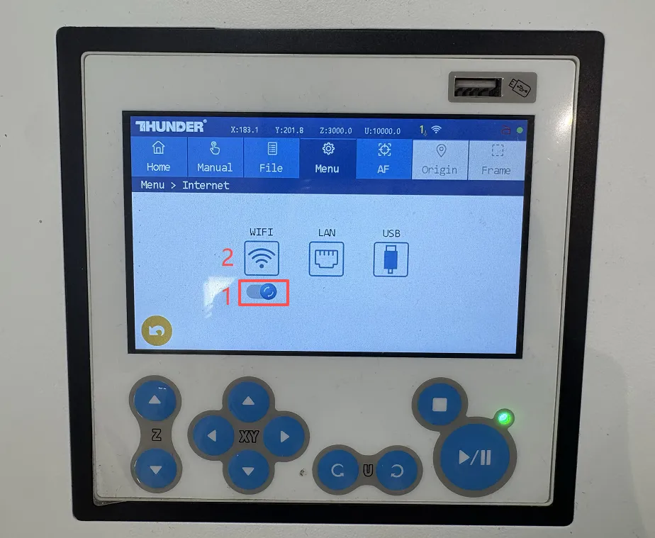 Step 1: Select Internet from the Menu on the panel. | Step 2: Enable the WiFi function and enter the WiFi settings interface. |