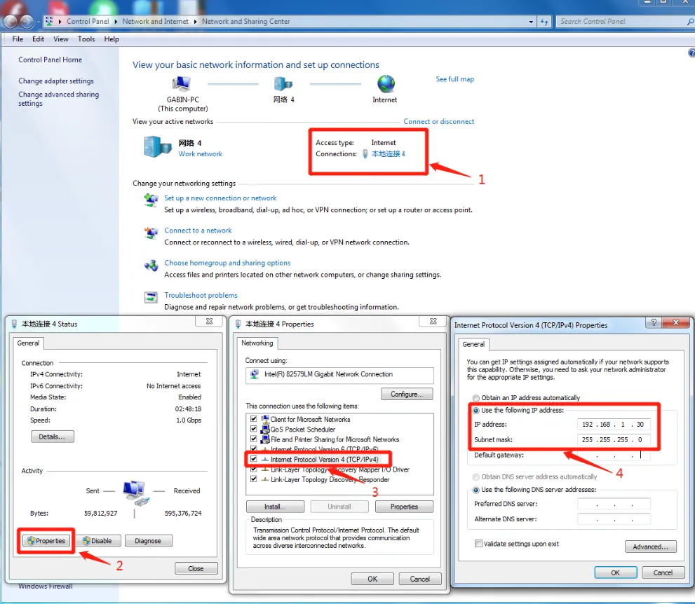 Go to Start >> Control Panel >> Network and Sharing Center, configure the connection for local connection, like below.